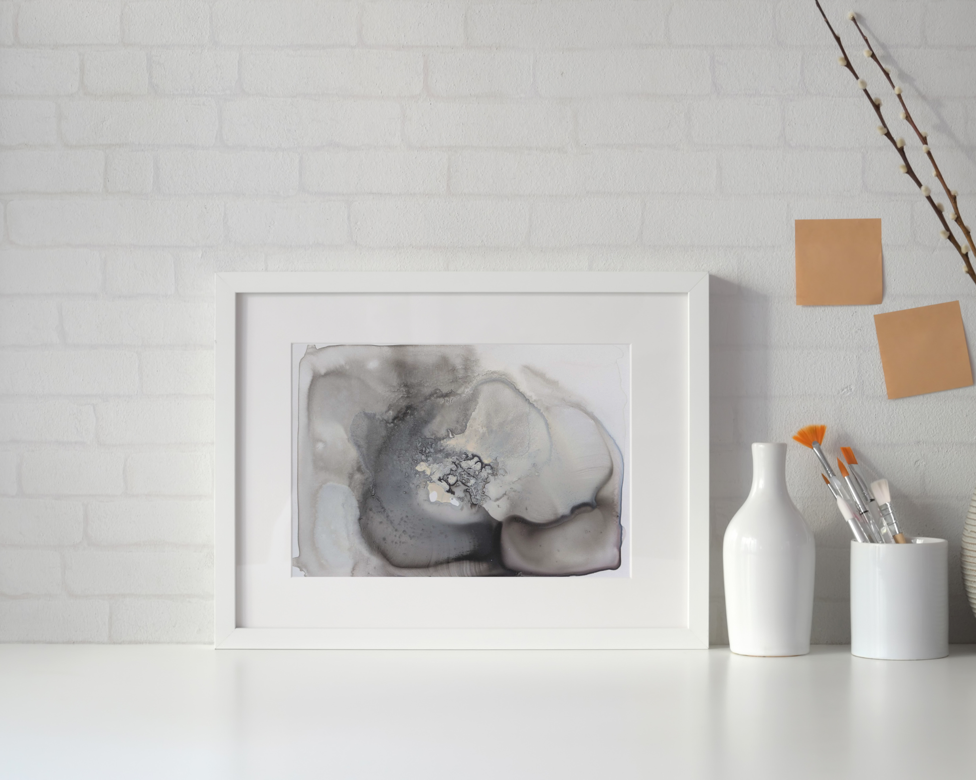 "Oyster", Original Fluid Abstract Artwork, 5" x 7"